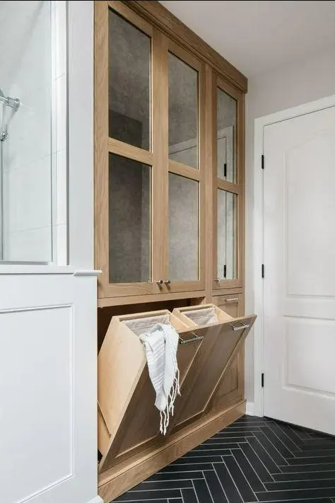 Another ingenious space-saving idea is the use of sliding doors for both the shower and the bathroom entrance. This eliminates the need for door clearance space, freeing up additional room for other functional uses. By employing these small changes, you can significantly improve the space’s usability without a complete overhaul.